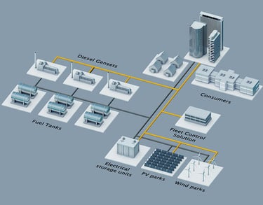 Integrating photovoltaic, diesel power generation, and energy storage for efficient energy management.
