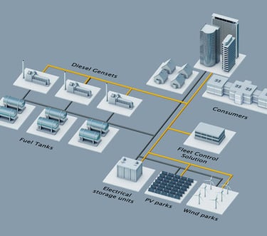 Hybrid power plants combine at least two different energy types. Rather common is the combination of diesel-gensets and renewable energy systems with or without storage. The actual configuration is very site and company specific. It depends on irradiation and wind characteristics as well as on access to financing and the specifications of the existing gensets in case of a retrofit.